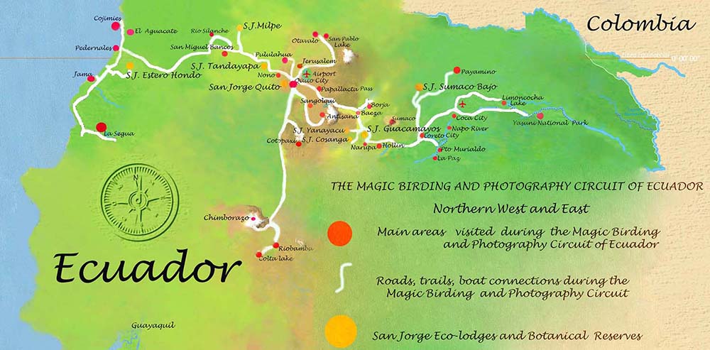 Reserves are located in Quito-Tandayapa-Milpe-Cosanga-Yanayacu-Estero Hondo-Guacamayos &Sumaco Bajo